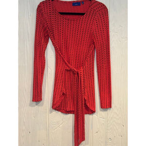 This is a pre-owned Peloton robe, size L/XL. It is made of 80% cotton and 20% polyester. The robe is gray with a white interior and a geometric pattern on the hood. It features a tie waist and long sleeves. There is a small spot on the right sleeve. The robe is made for Peloton by Kassatex.