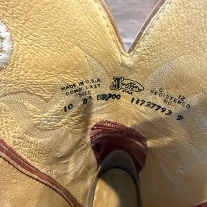 š¤ classic Justin tan & red cowboy boots, features authentic intricate stitching
