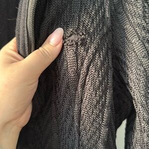 See photos for flaws, pilling under the arms, 1 noticeable snag, and 1 hole on the left hand side (see photo, thumbnail for size reference).