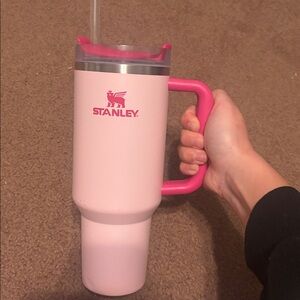 Stanley Pink Mug with Handle and Straw