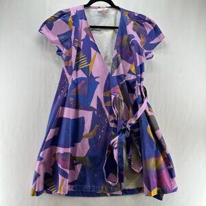Free People Sweater Size L Cassidy Off The Shoulder Striped Tie Neck Tunic Blue