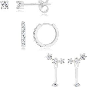 Product details Material Sterling Silver Metal type Silver Earring design Hoop Gem type Cubic Zirconia Item type name Hoop Earrings About this item [Silver Earring Set] 4 different combinations :Stud earrings, small hoop earrings and hoop dangle earrings. Each simple and stylish earrings se