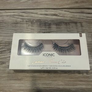 Brand new, in box. Elevate your eye makeup with ICONIC London's black lashes, designed to offer a natural, wispy look. These synthetic lashes feature a medium length and density, perfect for both everyday wear and special occasions. The clear or black curved band ensures a seamless blend with your natural lash line, providing a dimensional, fluttery effect.