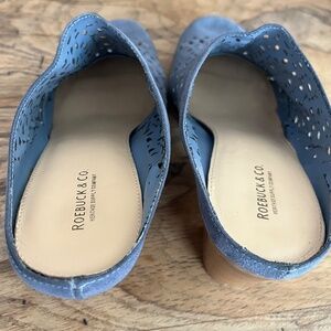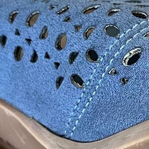 Step out in style with these Roebuck & Co. Mona booties, perfect for casual wear in the winter, fall, or spring. Crafted from light blue faux suede with chic laser-cut details, they offer a fashionable flair to any outfit. Designed with a slip-on closure, round toe, and a comfortable 3-inch heel, these ankle booties are made for women who wear size 8.5. A durable synthetic outsole and lining ensure lasting support, making them a stylish and practical choice for everyday wear.