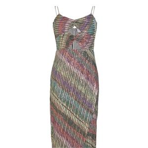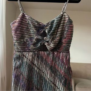 Saylor Lissandra Sequined Midi Dress Rainbow Double Cutout Spaghetti Strap XS C9
