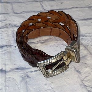B.B. Simon Cheetah Print Leather Calf Hair Textured Gold Buckle Belt S