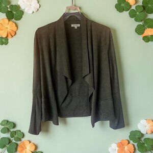Light-Medium wash, lightly distressed, designed to hug your body, this stylish jumpsuit is a show-stopper! Notch collar, two flap breast pockets, two utility-style front pockets, two rear pockets, hidden zipper placket front closure with snap at waist to hold in place. Short sleeves, seamed design. Women's size 2 (Medium) approx measurements: Inseam - 33," across armpits - 17," length from top-to-bottom - 60." Made from cotton/polyester/lyocell/elastane blend. Pre-owned in very good condition.