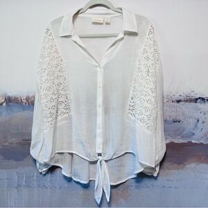 BELLE by KIM GRAVEL Tie-Dye Watercolor Womens Plus Size 4X Tunic Flowy Blouse Smocked Cuff Sleeves