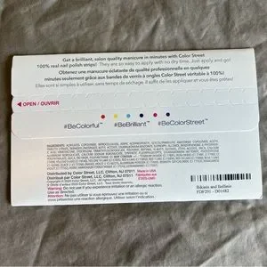 Color Street nail strips are made of 100% real nail polish. They are easy to apply, long-lasting, and easy to remove. Each package contains 16 double-ended nail strips, an alcohol prep pad, and a nail file. Seal your package with a hair straightener when you’re done to save the remaining strips for another mani or pedi. I am not a Color Street stylist, but I love the product!