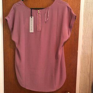 Olive & Oak, NWT, micro-sleeve, polyester/spandex, lightweight, blouse, Sz: Lg, Color: Dried Fig (mauvey purply pink)