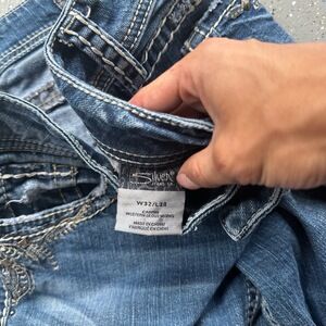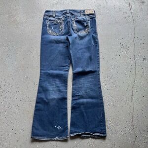 Silver Jeans Co Jeans Womens Size 32x30 Blue Flared Distressed Y2k Embroidered