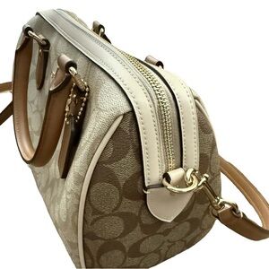 Elevate your style with this elegant Coach women's bag. Featuring a sophisticated tan and cream design, this bag is perfect for any occasion. Crafted with attention to detail, it combines functionality with timeless fashion.