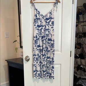 Pretty gray maxi dress with floral pattern. Cool fabric and has a zipper in the back. Only worn once or twice and always washed on delicate and hung to dry.