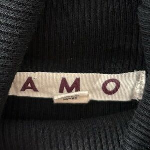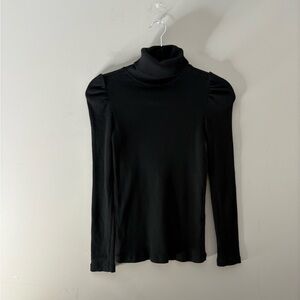 AMO Puff Sleeve Turtleneck Ribbed Long Sleeve Shirt Minimalist Black