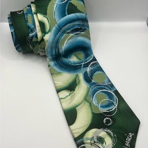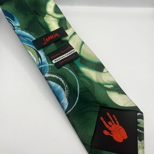 J. Garcia 100% silk Abstract Green and Teal Tie