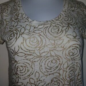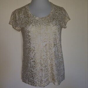 Cotton-modal blend tee shirt by GAP. Shiny gold rose motif on soft light cream colored fabric. Like new!