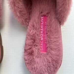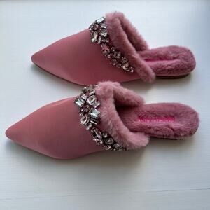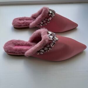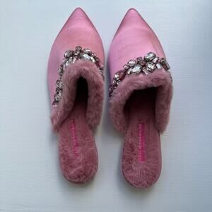 Isaac Mizrahi Live! Embellished Mule Pink 6.5 M Rhinestone Rimmed Faux Fur