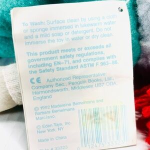 The Eden Madeline Plush Doll in ice skates from 1992 is a vintage collectible with a red straight hair, light complexion, and black eyes. This 14-inch doll features a soft body and removable clothes, making it perfect for play. The doll is part of the Eden franchise and is an original play doll made of polyester, appealing to collectors and individuals looking for a unique addition to their doll collection from the 1990s.