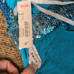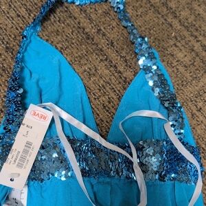 Eye-catching blue jumpsuit with sparkling sequin accents. Ideal for evening wear.