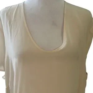 NWT Eileen Fisher Cream 100% Silk 2X Short Sleeves Top Hi-Low