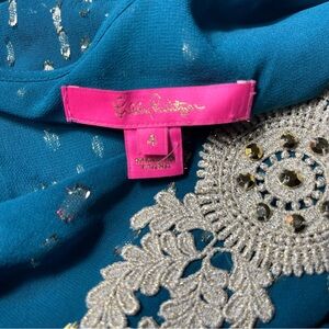 Lilly Pulitzer Silk Teal One-Shoulder Top Blouse