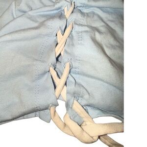 Light blue sleeveless top with a striking sun design. Features side ties for added style.