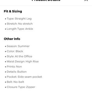 Chic and versatile ankle leg pants. Perfect for day or night. Elastic waist, pockets and pleating in front. Comfortable and stylish. Measurements in pics.