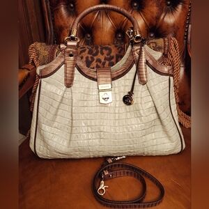 Elegant Brahmin Aubree Snow Leopard Print Croco Embossed Leather Satchel EUC