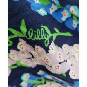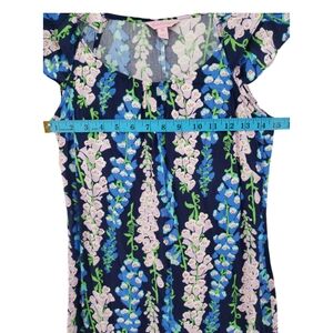 Lilly Pulitzer Size XS Blue Floral Dress with Belt 100% Rayon Ruffled Sleeve Bra Strap Anchors