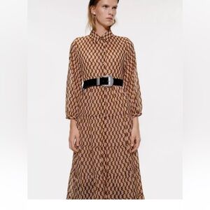 Zara Brown Patterned Maxi Dress