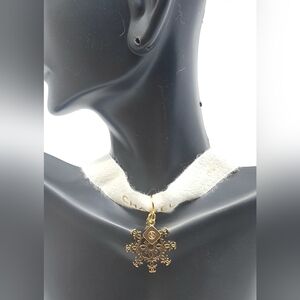 Chic CHANEL necklace with a gold snowflake charm. Adds luxury to any look. Never worn. Beautiful necklace choker. Soft like ribbon.