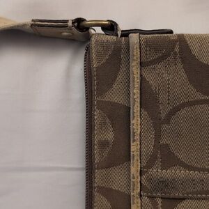 coach cross body bag in tan and brown definitely has some love left. I took a video to show the bag definitely has some wear. but I am making the price reasonable for all the wear and tear on this coach crossbody