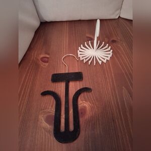 Stylish hanger set by Catherine Malandrino. Features a sleek black hanger and a tie holder