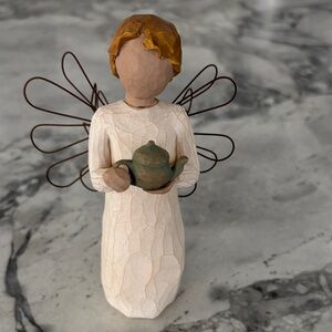 Vintage primitive holiday decor with this charming pumpkin stuffed scarecrow figurine. Featuring a deep orange pumpkin head and stylish brown plaid overalls, it's perfect for creating a festive atmosphere. Measures approximately 15.5” in height, 11” in width on a 5” round base. In excellent condition.