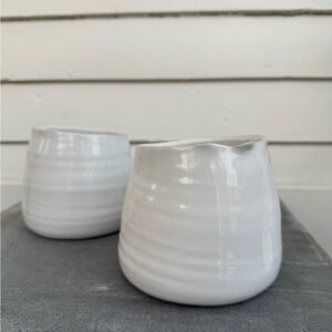 Beautiful crafted white ceramic vase with a smooth finish. Perfect for home decor. Tegan Pot 5.5" wide x 4.5" tall. Perfect for floral arrangements or as a planter. No drainage hole.