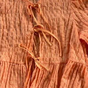 Stylish orange blouse with crinkle texture. Features tie front and long sleeves. Perfect for casual outings.