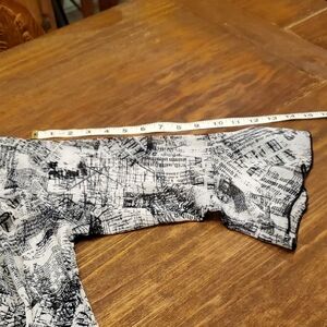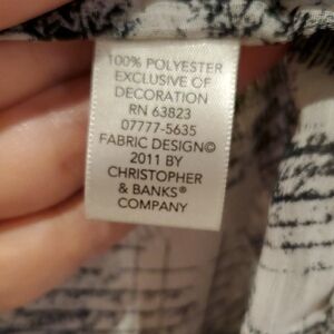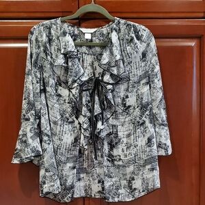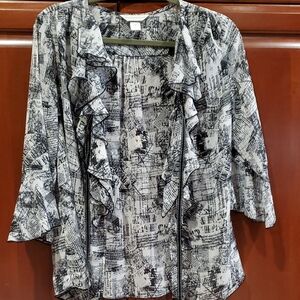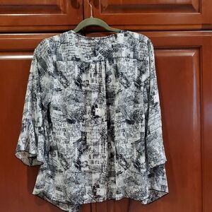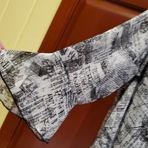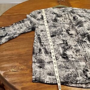 Christopher & Banks Black White Flowy Blouse Newspaper Print Cardigan Sheer Med.