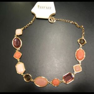 This Trifari necklace features an elegant design that blends peach and salmon tones, creating a warm and sophisticated look. The centerpiece consists of a series of smooth, polished beads in these soft hues, which are beautifully complemented by the gold-tone chain. The gold-tone chain adds a touch of luxury and durability, ensuring the necklace stands out as both a fashion statement and a timeless piece. This brand-new necklace is perfect for adding a pop of color to any outfit while maintaining a classic and refined aesthetic.