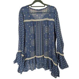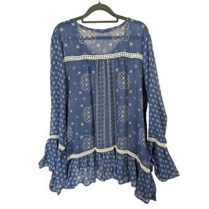 Hint of Mint Women Top Plus Size 18W Blue Sheer Paisley Bohemian Flowy Romantic