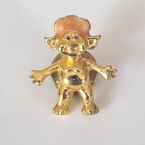 Gold Troll Labubu Pin with Pink Hair
