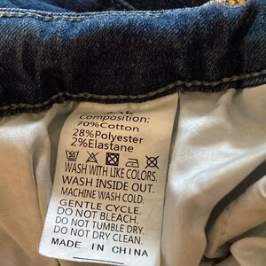 Super stretchy, they look like jeans but wear like jeggings. Gored inset knee to ankle is embroidered. Raw hem. Flare is wider than bootcut, but not true bellbottom. Never worn, washed once.