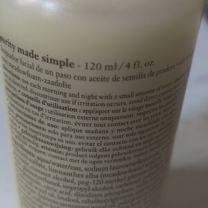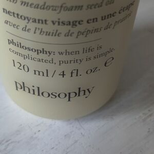 Experience the gentle cleansing power of Philosophy's Purity Made Simple One-Step Facial Cleanser. Enriched with meadowfoam seed oil, this cream-colored cleanser effectively removes makeup and impurities, leaving your skin feeling refreshed and purified.