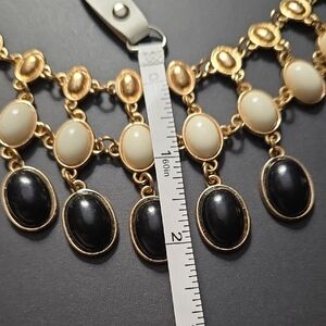 Black & White Cabochon Statement Bib Style Gold Tone Necklace. Pre-owned. Please see photos as they are part of the description.