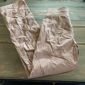 Light gray athletic shorts by Lululemon Athletica. Ideal for workouts and casual wear. Breathable and comfortable design.