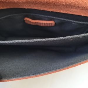 Textured rust crossbody bag. Features a gold chain strap. Stylish and versatile. Great condition.