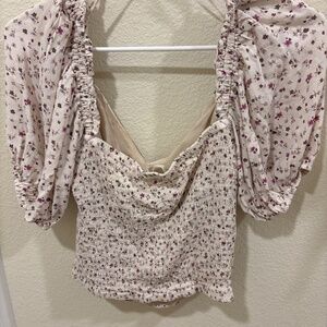 ASTR THE LABEL top floral ruched sleeve size large in perfect condition