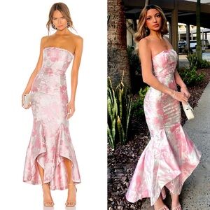 Cult Gaia Charlique Pleated Plisse Satin Strapless Mini Dress Copper