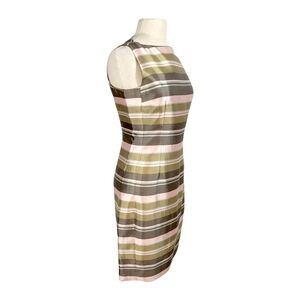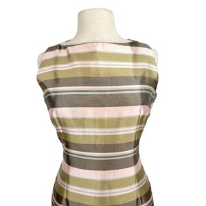 Nina Ricci French Silk Pink & Olive Striped Sheath Dress