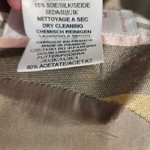Nina Ricci Edition Boutique Paris French designer silk blend sheath dress in wide stripes in pastel color palette of pink, olive green, and grey. Bateau neckline, fully lined. Very good condition. France Size 44, approximately equivalent to US Size Large Please see chart above and measurements below, laying flat: Chest 19.5" Waist 16.5" Hips 20.5" Length 38"