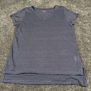 Eileen Fisher T Shirt Women's Petite PS Blue Stripe V-Neck Top Organic Linen